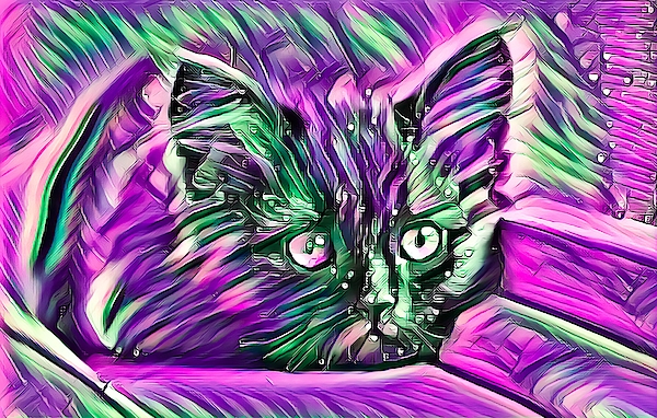 Beautiful Abstract Cat Faces: These awesome surreal abstract cats and kittens were raised, photographed, and digitally painted by myself. The colorful artwork is available as a fine art print, framed print, canvas print, acrylic print, metal print, greeting card, poster, throw pillow, phone case, tote bag and more! All print work is high quality and professionally done with a 30-day money back guarantee. Easily choose the correct size and style for your home or office by clicking on the product and choosing a size to see it mocked up in a particular setting. Please don't hesitate to contact me with any questions you may have on prints, downloads, or specific use cases. Image © Don P. Northup | DigitalArtPros.com