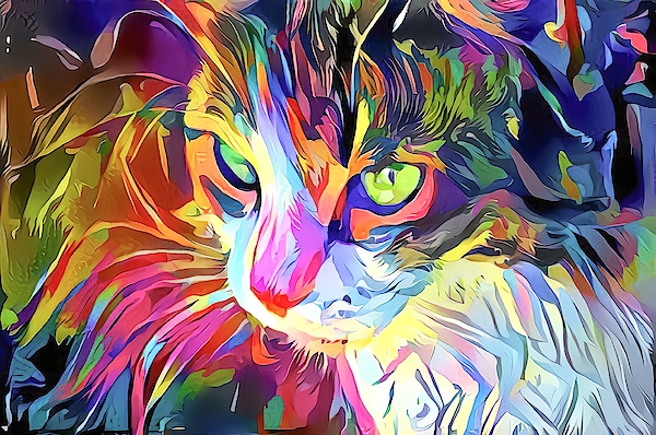 Beautiful Abstract Cat Faces: These awesome surreal abstract cats and kittens were raised, photographed, and digitally painted by myself. The colorful artwork is available as a fine art print, framed print, canvas print, acrylic print, metal print, greeting card, poster, throw pillow, phone case, tote bag and more! All print work is high quality and professionally done with a 30-day money back guarantee. Easily choose the correct size and style for your home or office by clicking on the product and choosing a size to see it mocked up in a particular setting. Please don't hesitate to contact me with any questions you may have on prints, downloads, or specific use cases. Image © Don P. Northup | DigitalArtPros.com